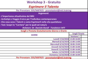 E ora veniamo workshop intitolato “Esprimere il Talento” che avete introdotto la scorso Primavera.